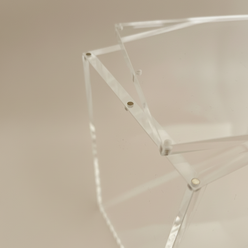 - Material: Kristallklar, reptålig akryl med polerade kanter.